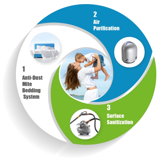 Recent publications by the American Academy of Allergy Asthma & Immunology, on the effectiveness of measures to control exposure to dust mites, confirm the possibility of obtaining a reduction in the symptoms of allergic rhinitis through the synergy of multiple interventions that have as their common objective the reduction of the concentration of allergens in the environment.